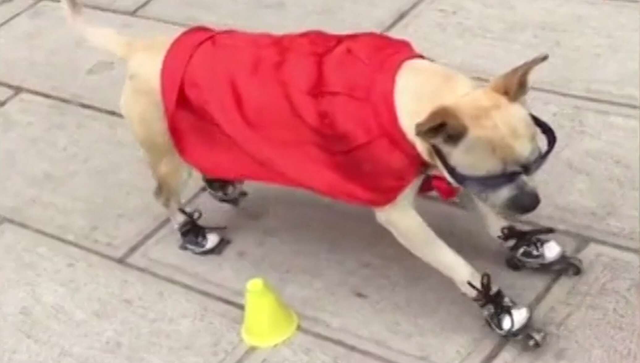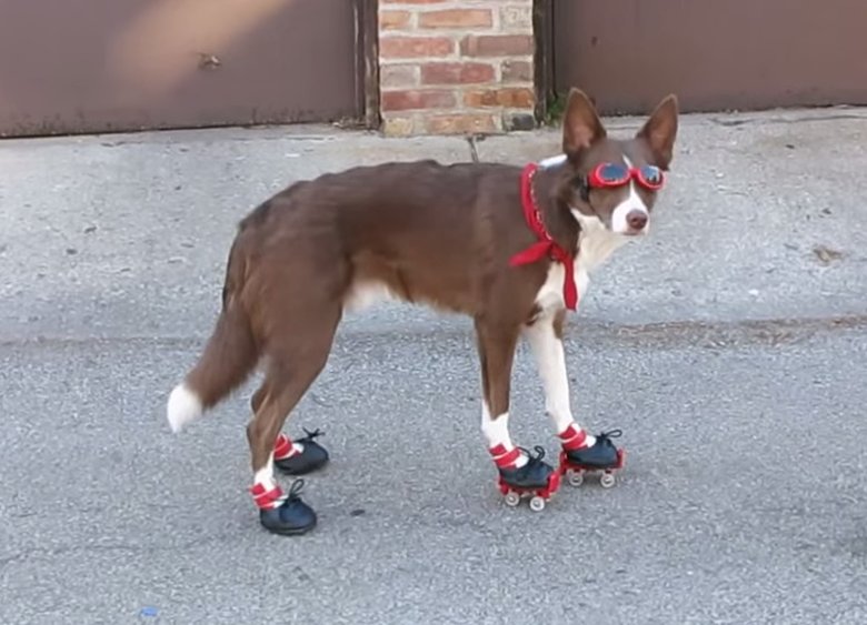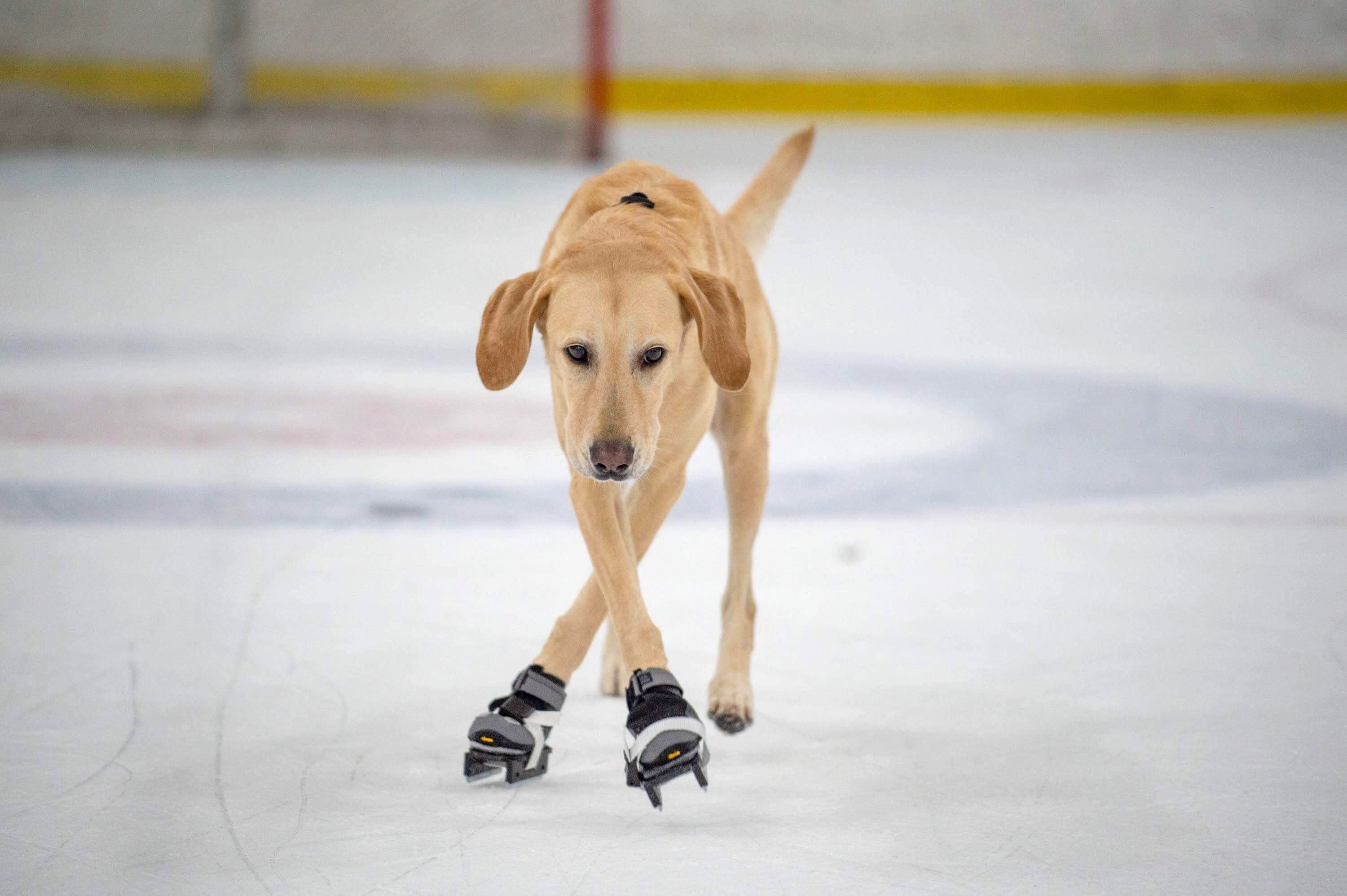 Собака катается на коньках