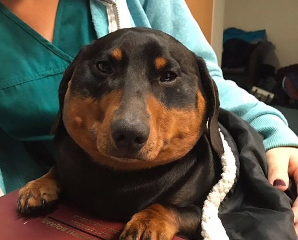 Собака такса жирная