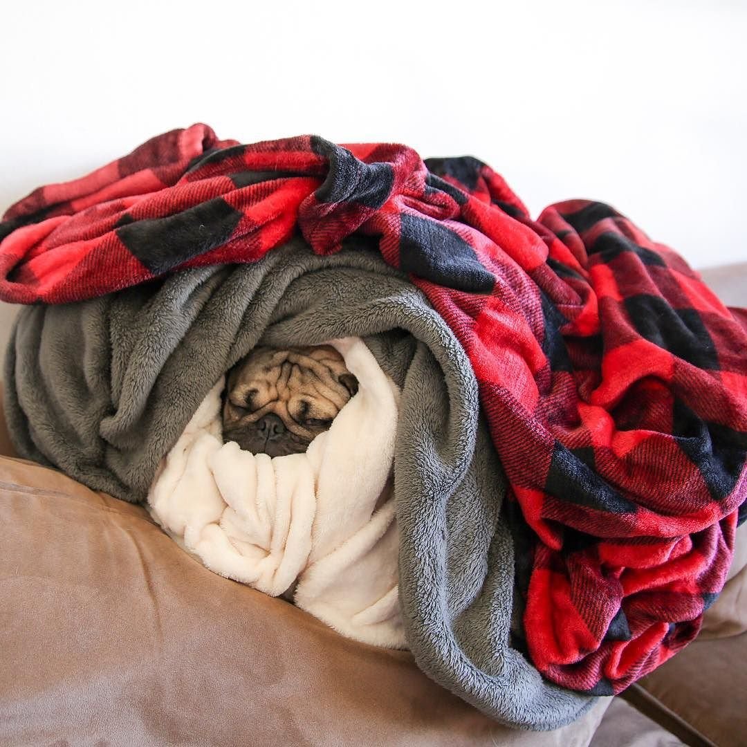 Собака укутанная в плед