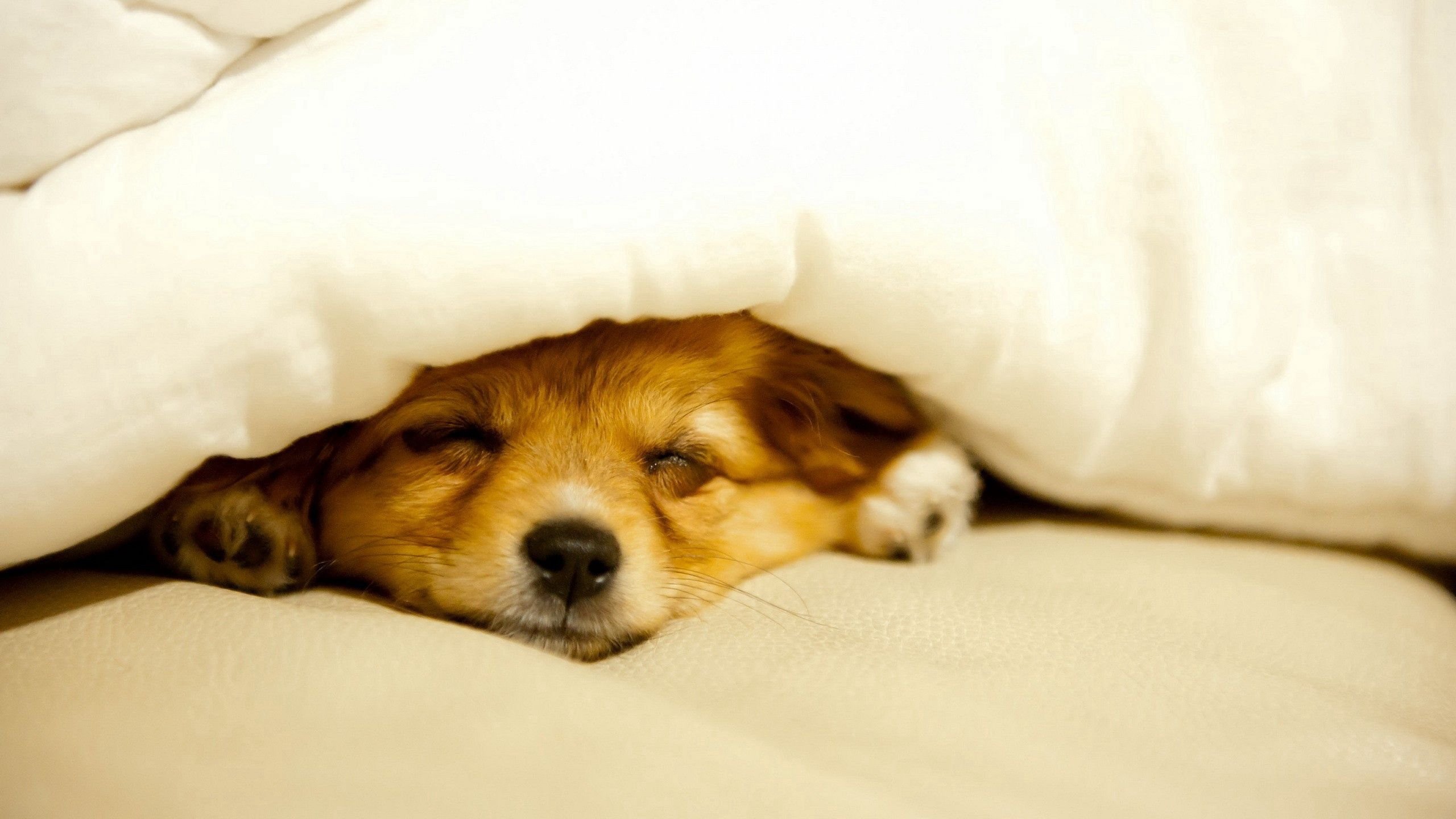 Щенок под одеялом