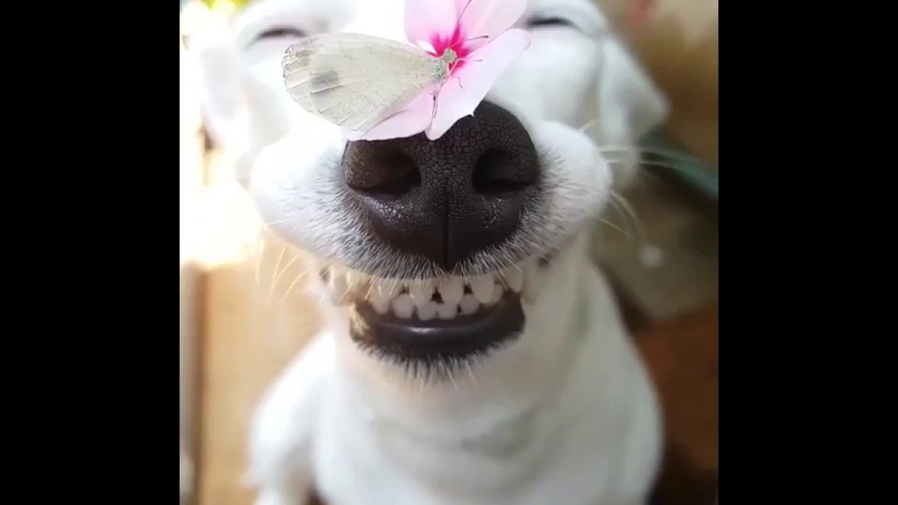 Смешные мемы Собака и бабочка на носу
