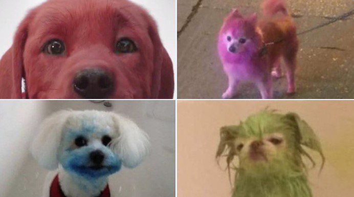 Разноцветные крашеные собаки