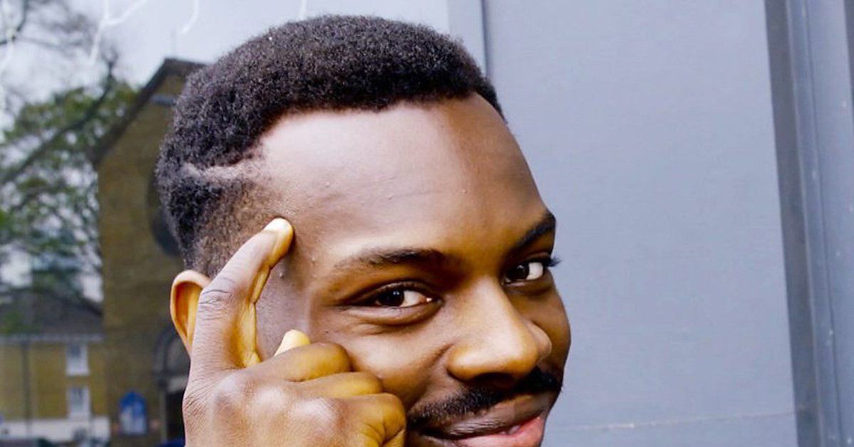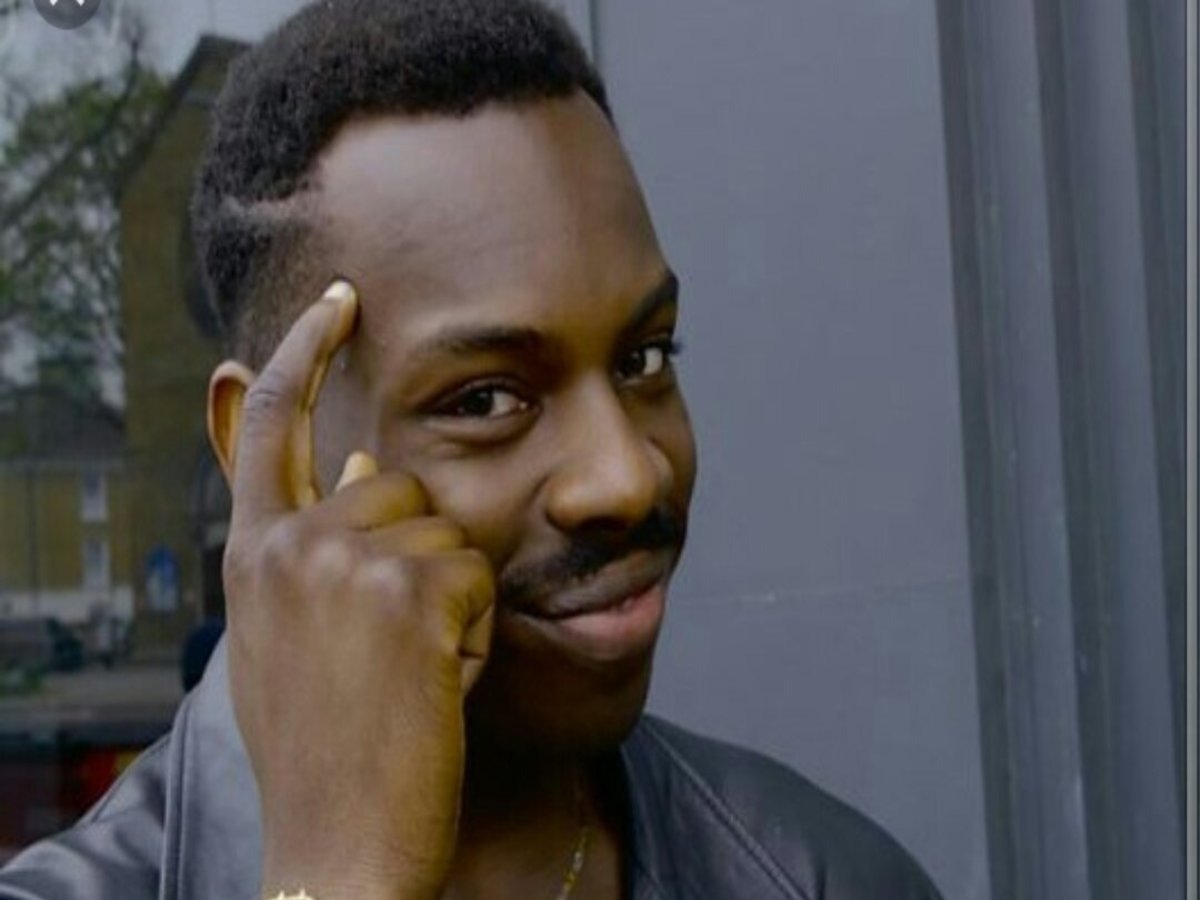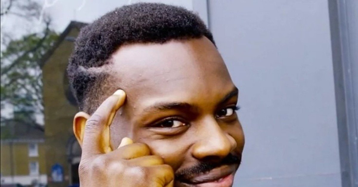 Мем негр с пальцем у Виска