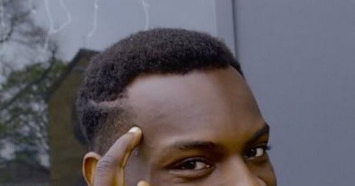 Этот мем изображает смешного чернокожего человека, который держит палец у виска и выглядит как будто задумался или удивился чему-то. Эта картинка часто используется в интернете для создания шуток и комических ситуаций. Смешные тексты и подписи добавляются к изображению, чтобы создать забавный контент, который вызывает улыбку у людей и становится вирусным в сети.