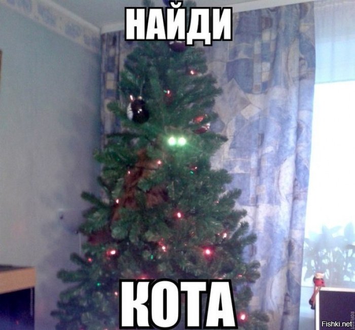 Смешные мемы Елка и кот