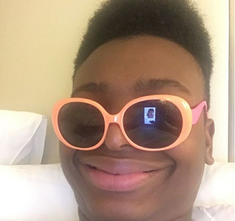 Афро амереканец в розовых очеах