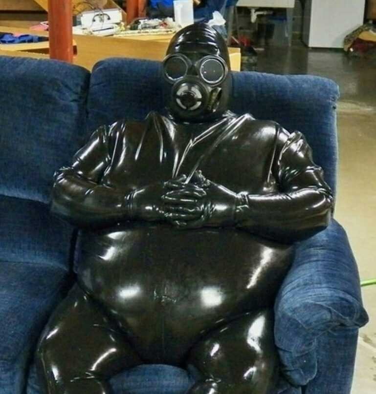 Мужик в латексе и противогазе