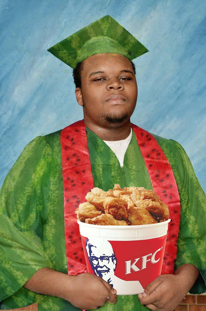 Чернокожий с арбузом на голове