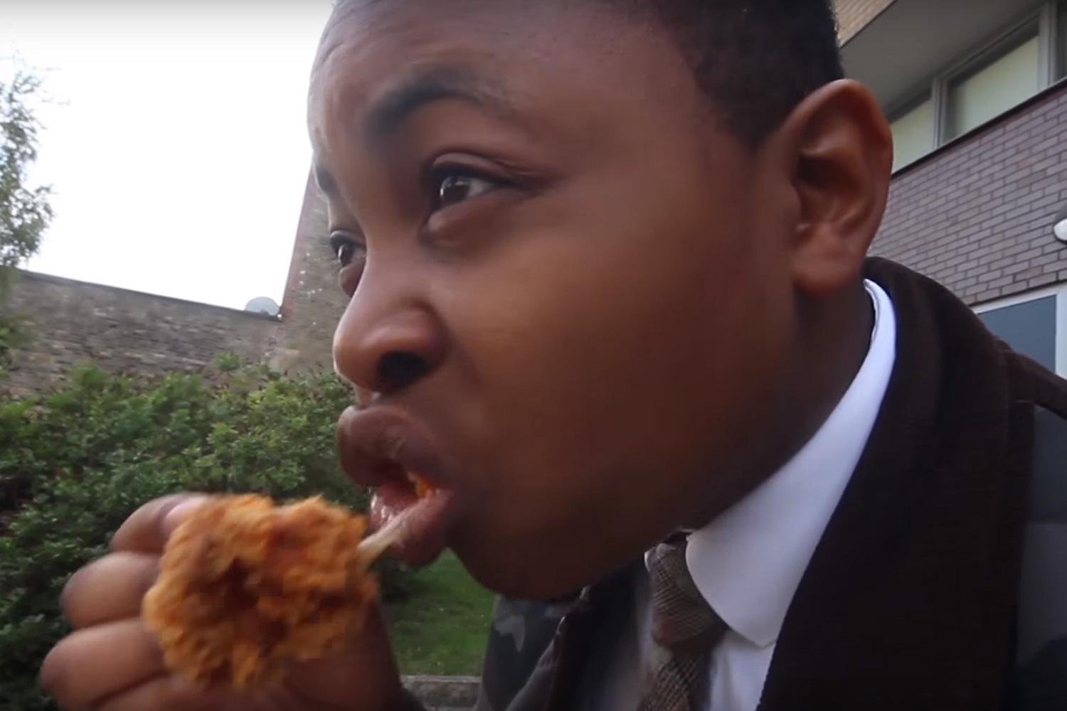 Афроамериканец который ест фаст фуд