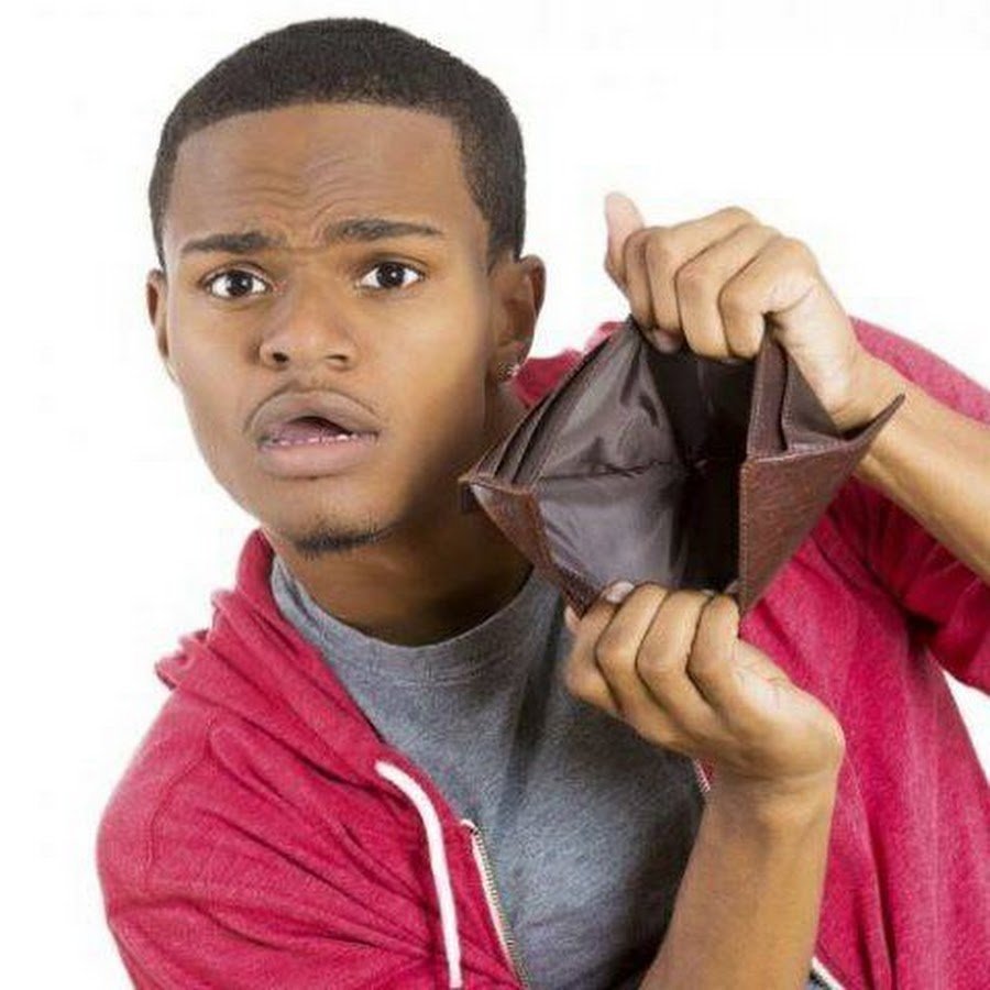 Черный парень с пустым кошельком