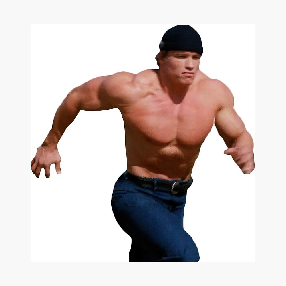 Накаченный Арнольд Шварценеггер бежит