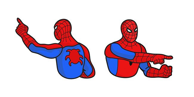 2 Человека паука показывают пальцем друг на друга