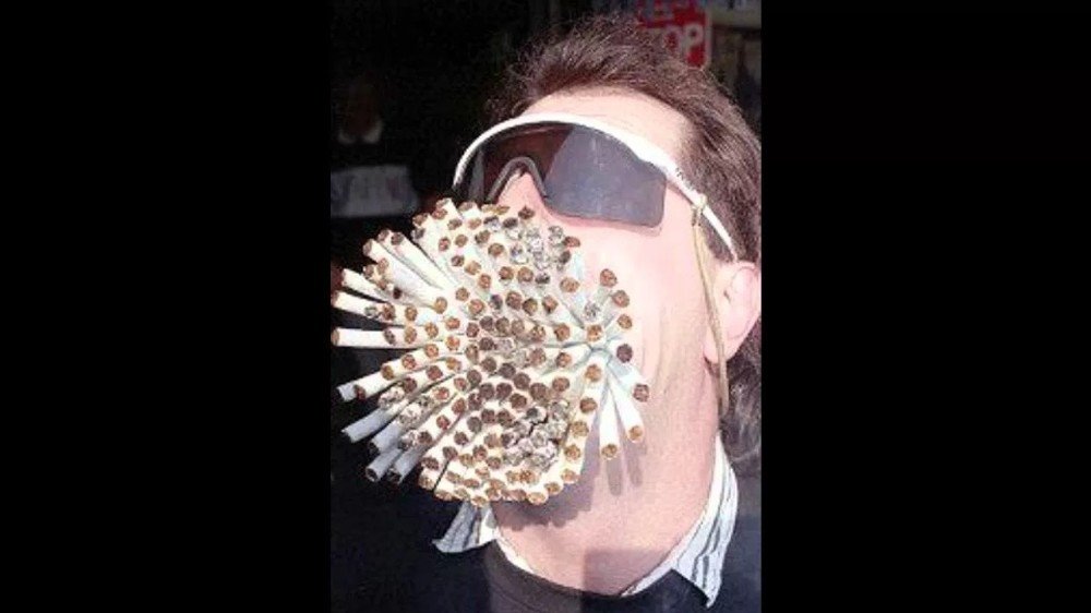 Человек с большим количеством сигарет во рту