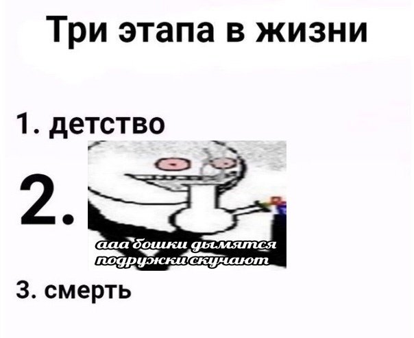 "Мемы 3 этапа жизни человека" - это коллекция юмористических изображений и текстов, отражающих различные этапы жизни человека с помощью популярных интернет-мемов. От первого вдохновленного энтузиазма и невинности детства до зрелости с ее повседневными стрессами и обязанностями, а также веселыми нюансами поздней зрелости - каждый этап жизни представлен забавным ироничным образом. Эти мемы объединяют людей всех возрастов в их способности увидеть себя в комических ситуациях и находить радость в повседневных перипетиях."