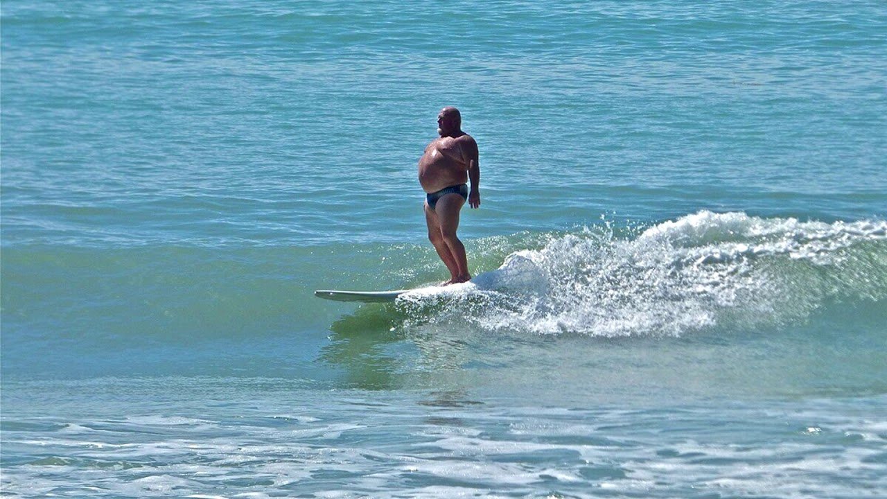 Жирный мужик на серфе