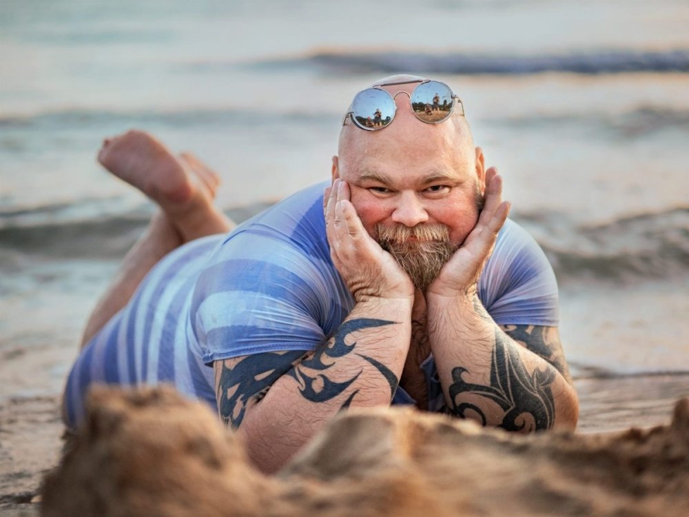 Чувак на пляже с песком