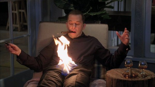 Сидит в горящей комнате