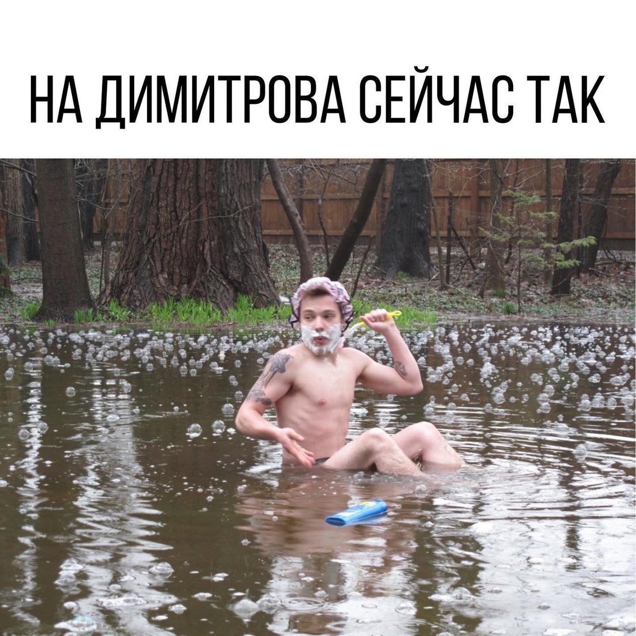 Мем чел в пруду