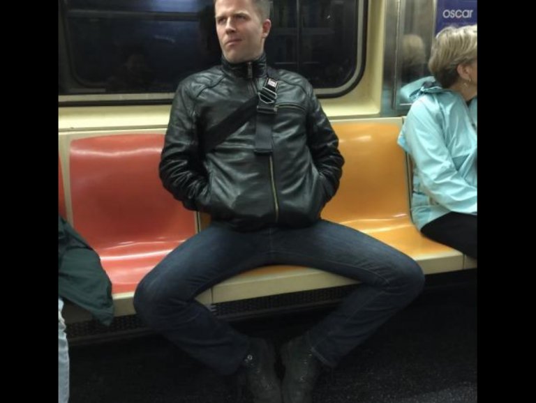 Мужчины в метро с широко расставленными ногами