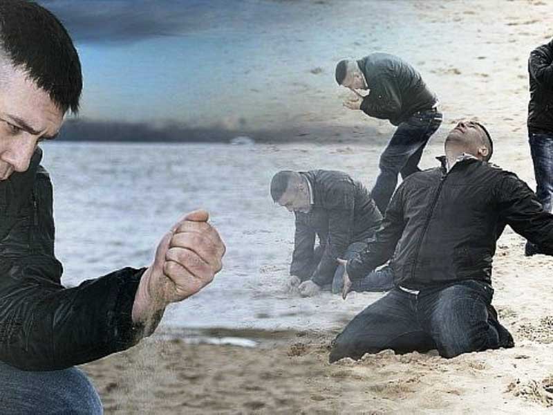 Грустный мужик с песком