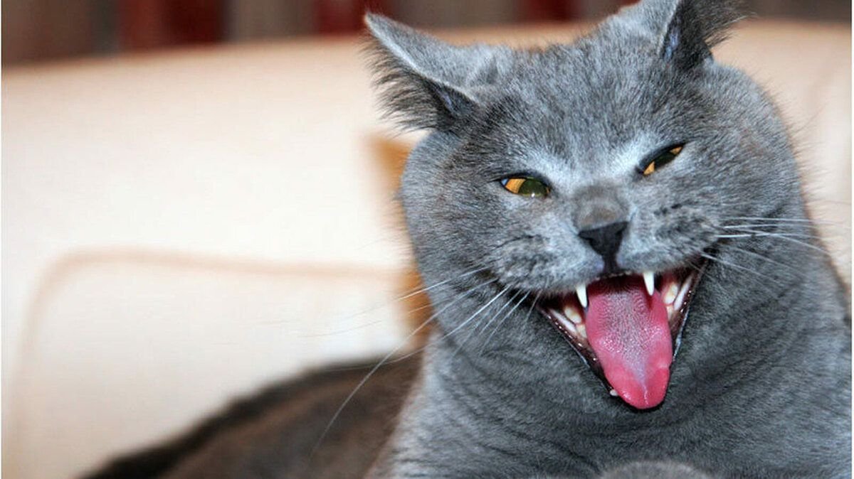 Кот улыбается с зубами