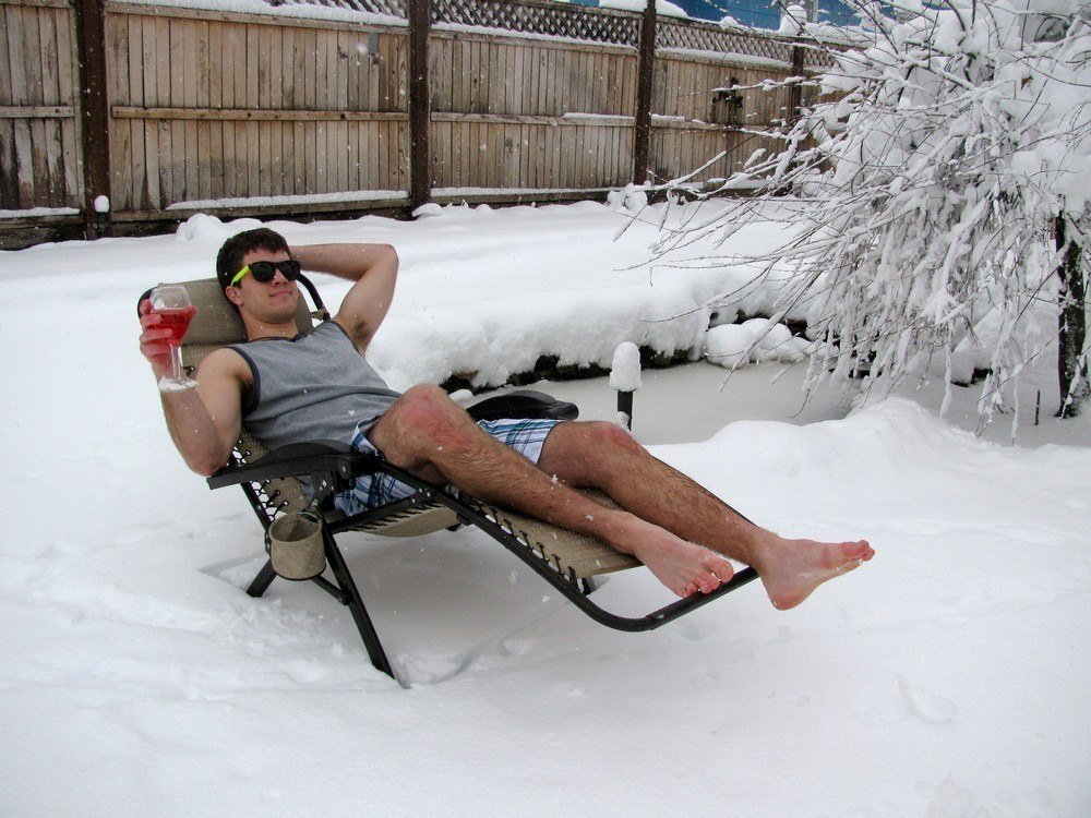 Загорает зимой