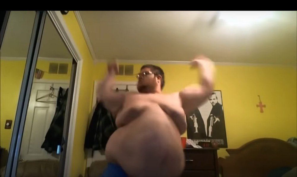 Толстый парень танцует