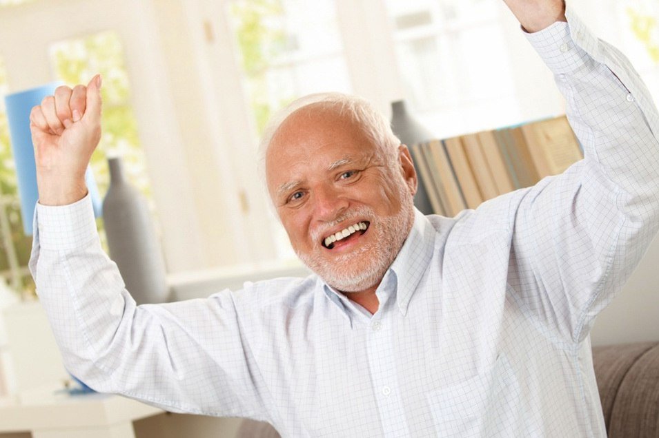 Смешные мемы Седой мужик улыбается