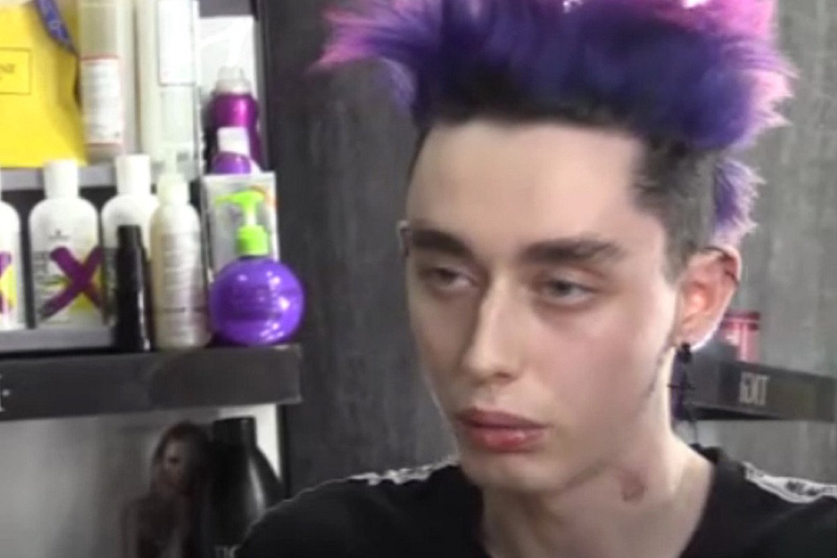Смешные мемы Мужик с фиолетовыми волосами