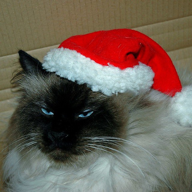 Кот в новогодней шапке