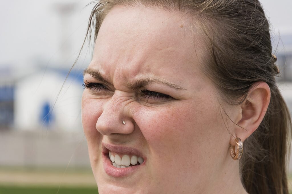 Человек прищуривает глаза