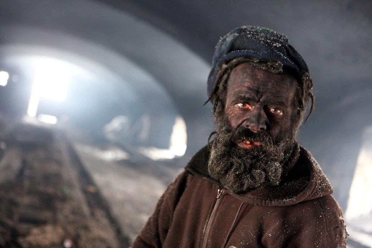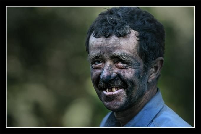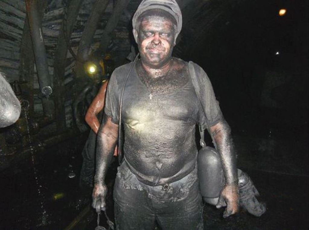 Шахтер в угле