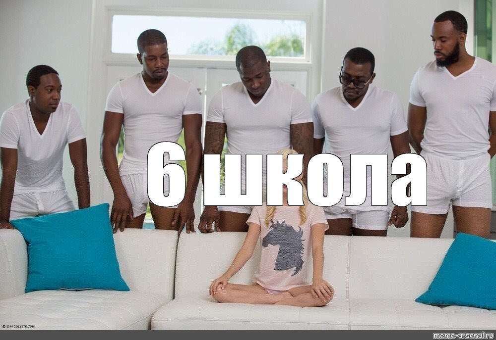 Мем с девочкой и 5 негров