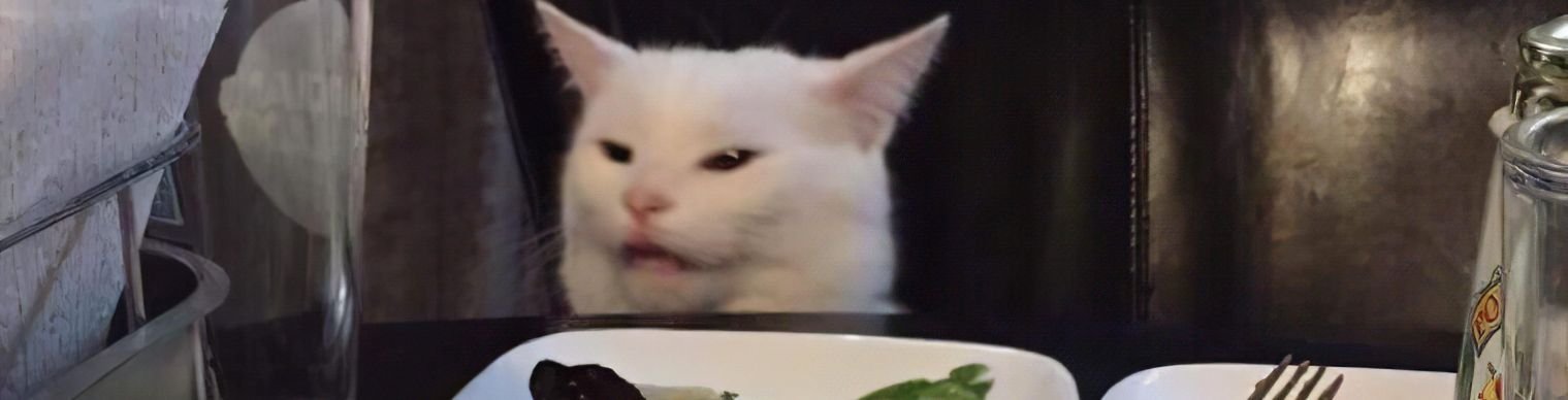 Кот из мема за столом
