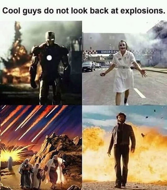 Смешные мемы Крутые парни не оборачиваются на взрыв