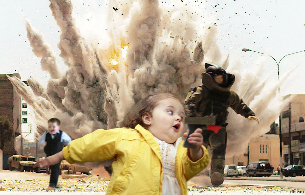 Девочка бежит от взрыва