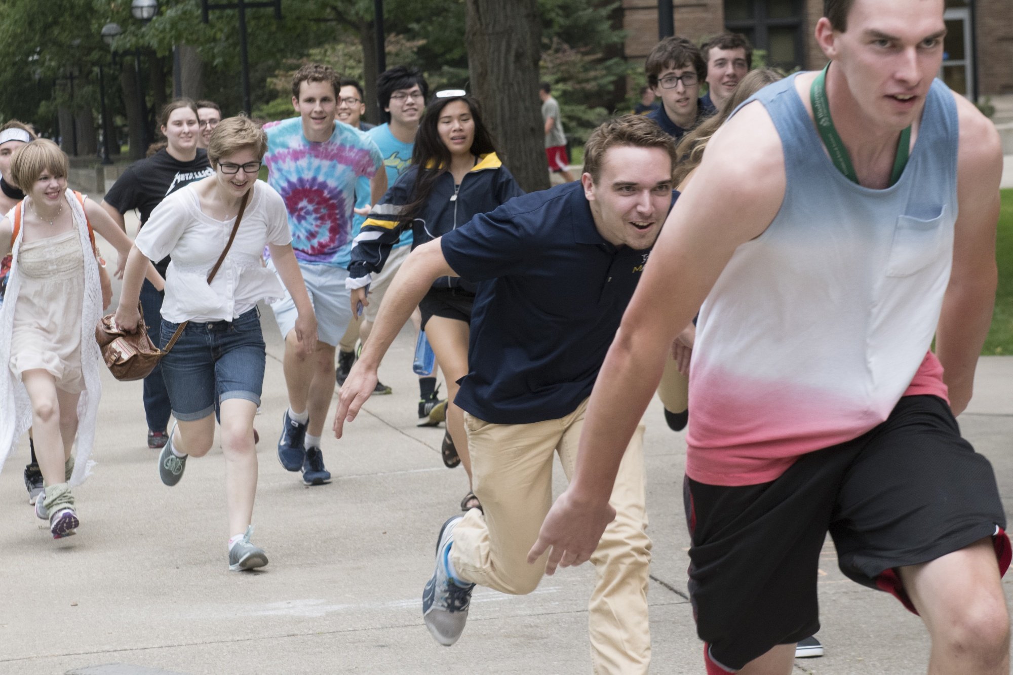 Толпа бежит за человеком