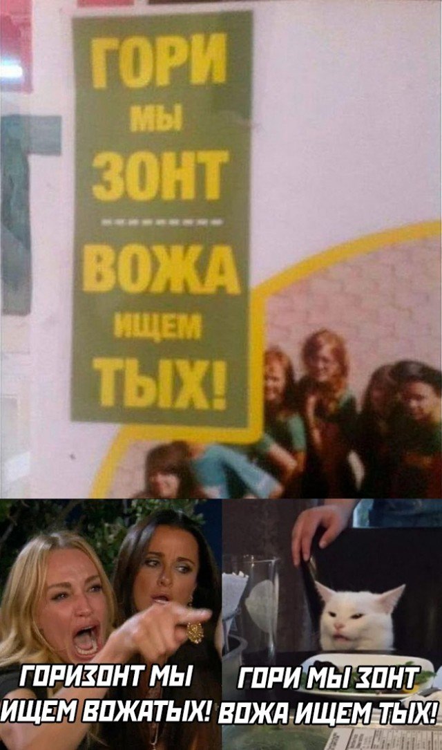 Мем с кричащими девушками и котом