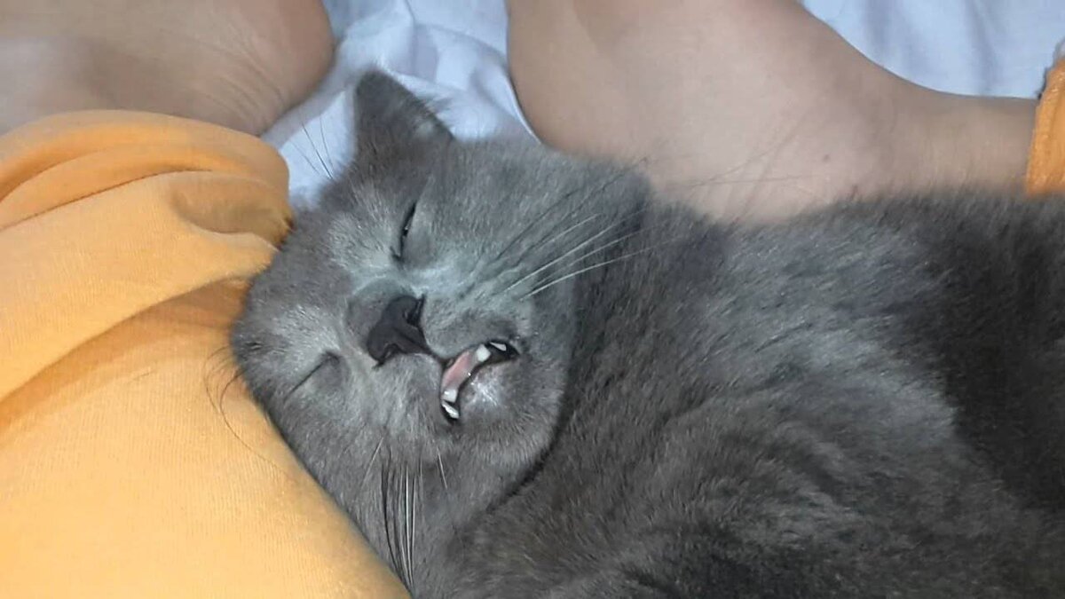 Кот спит с открытым ртом