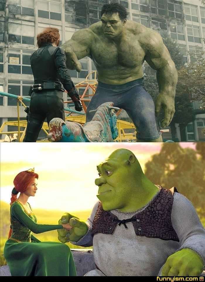 Смешные мемы Шрек и мстители
