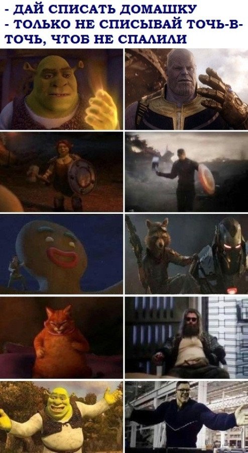 Мемы про Шрека и Мстителей