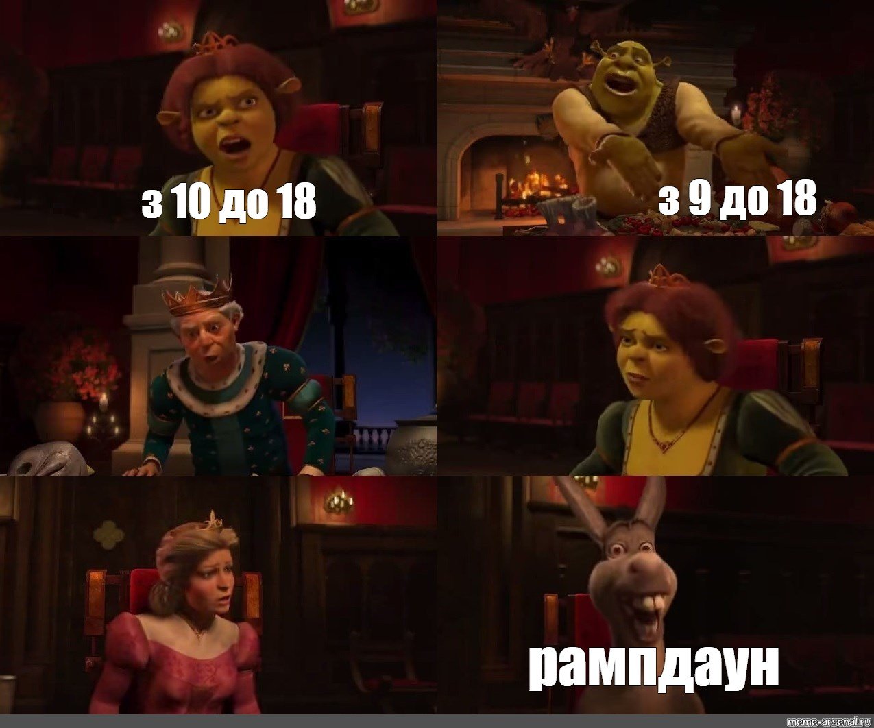 Смешные мемы С ослом шреком королем и фионой