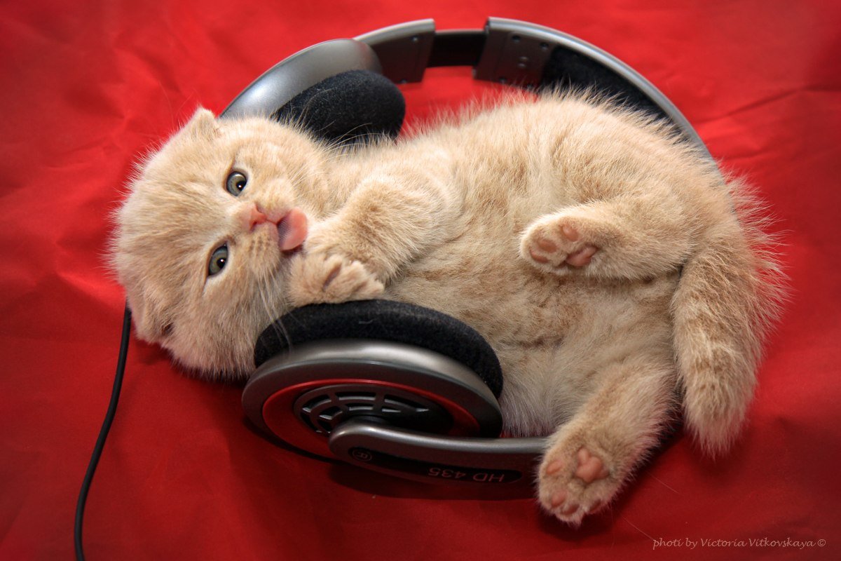 Котенок в наушниках