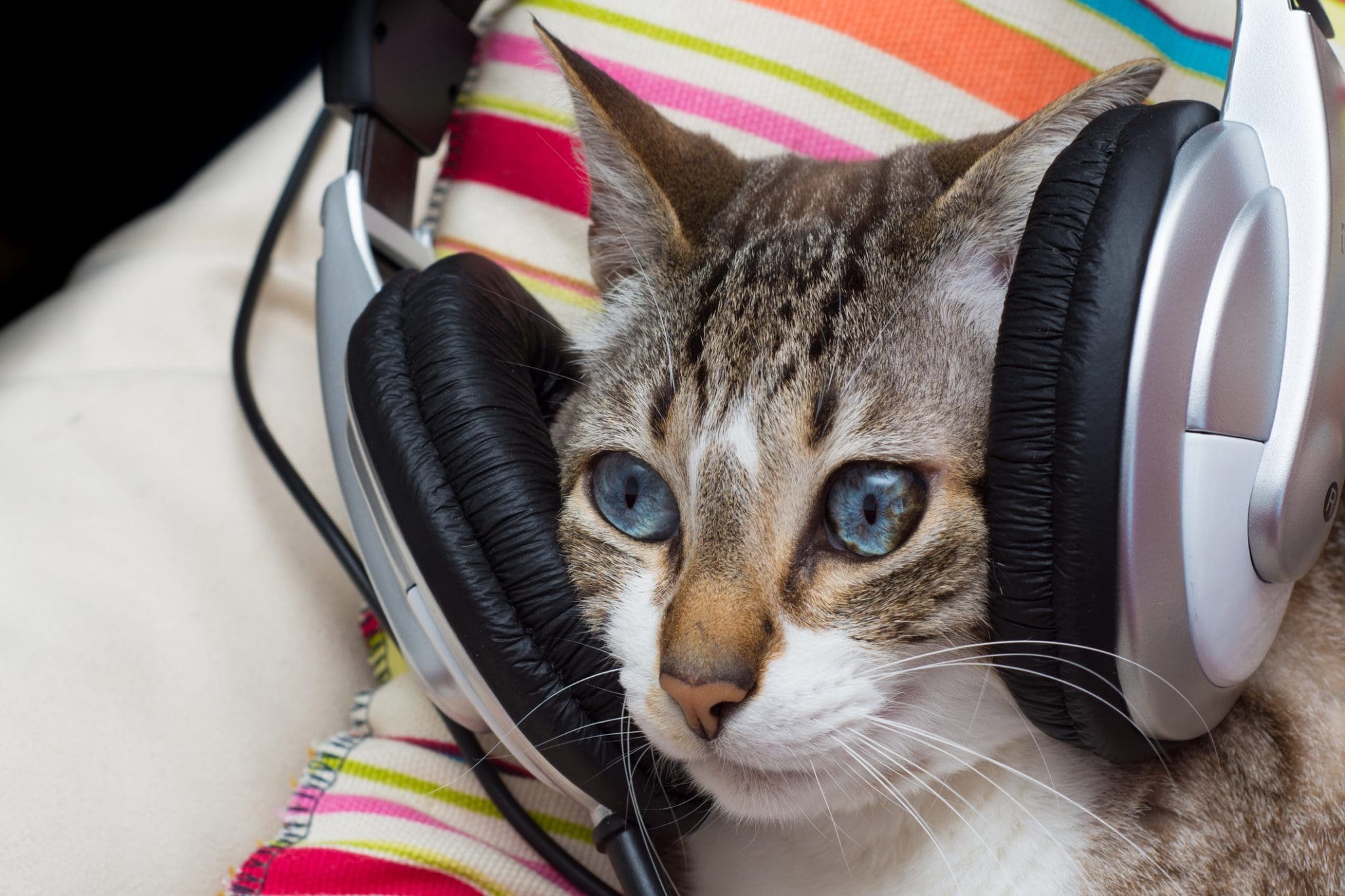 Кошка с наушниками