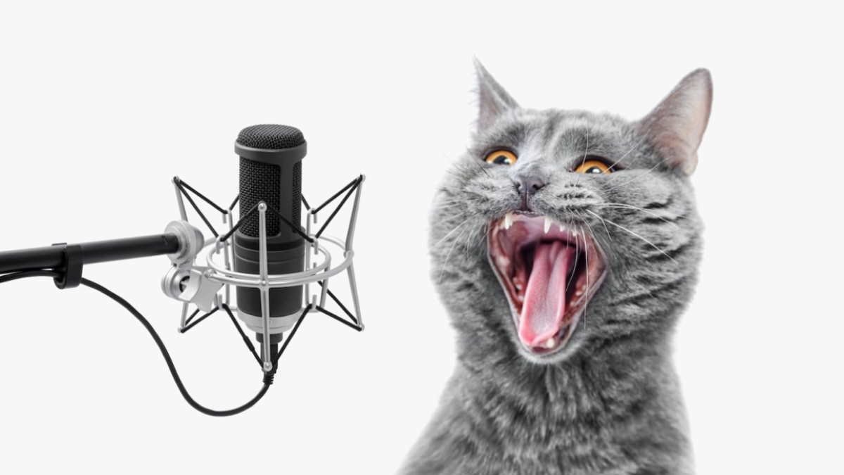 Кот поет в микрофон