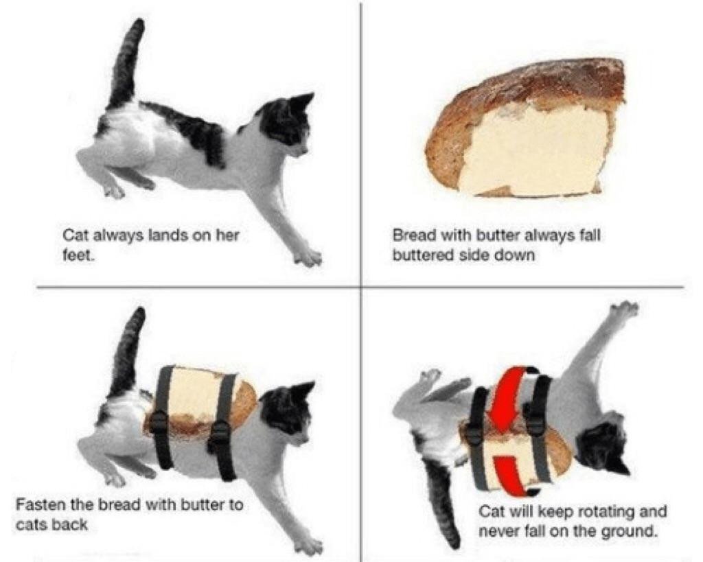 Вечный двигатель кошка и бутерброд с маслом