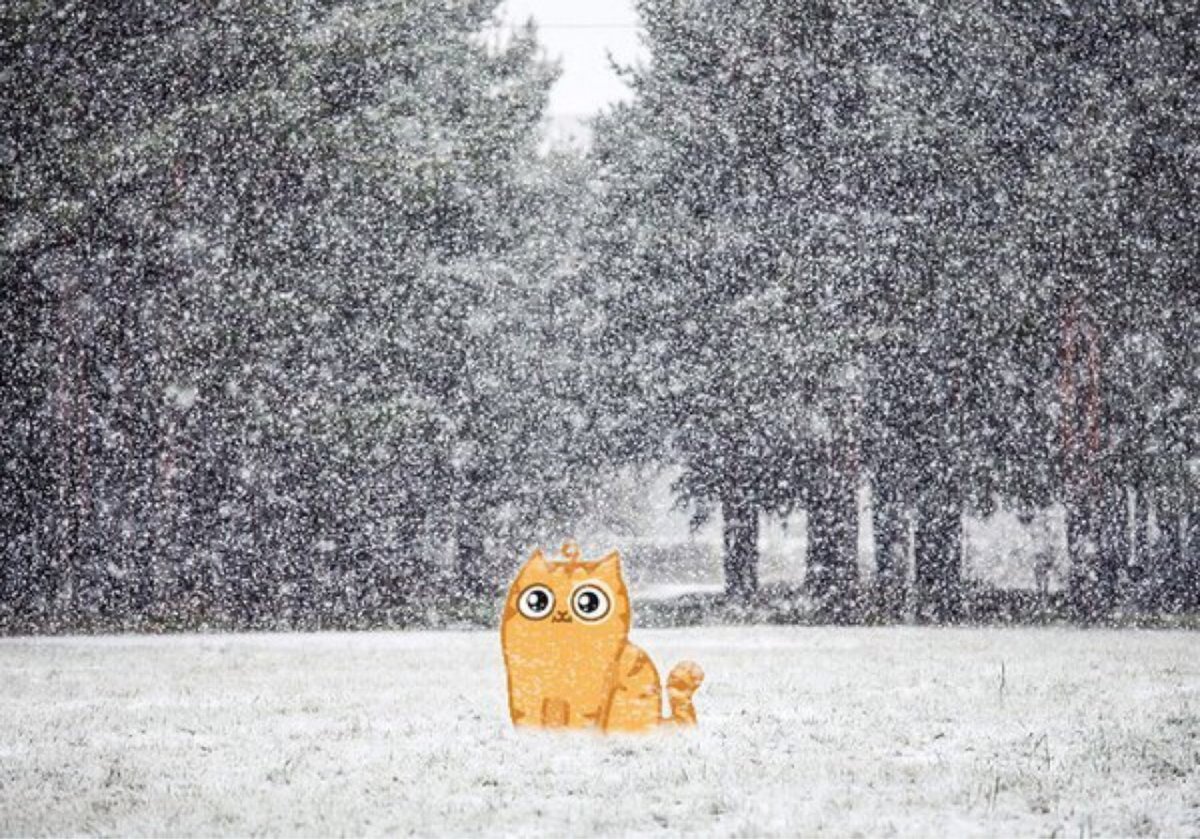 Кот в снегу Мем