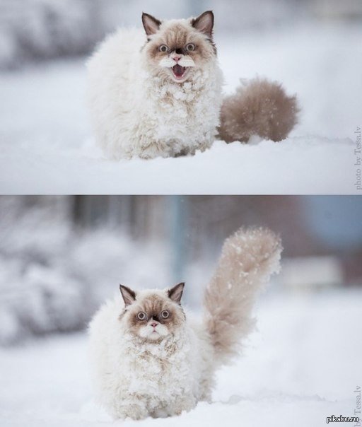 Смешные мемы Кот в снегу
