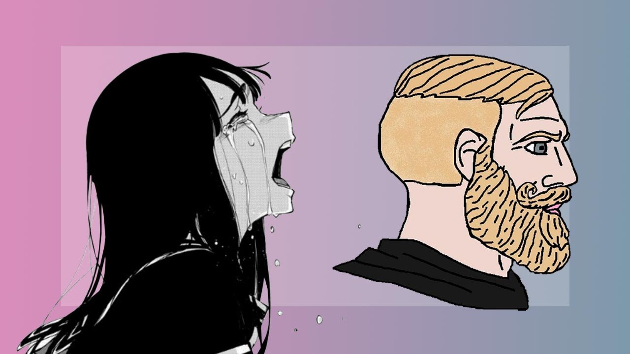 Мем с плачущей девушкой и мужчиной с бородой