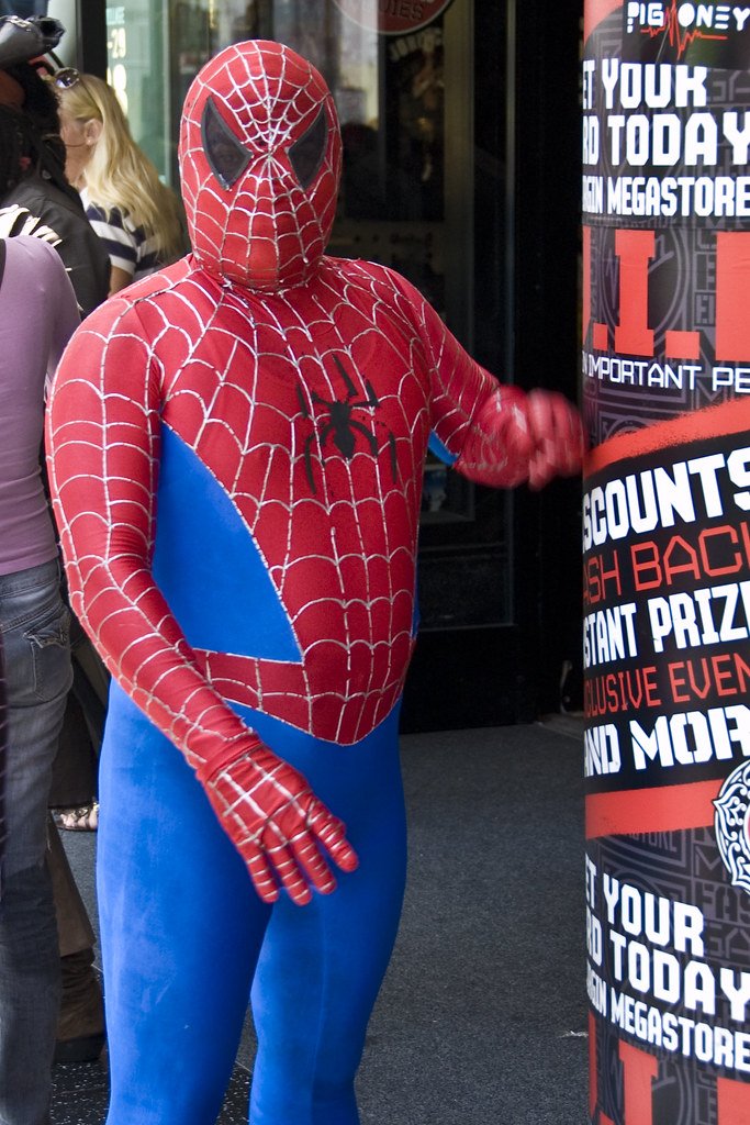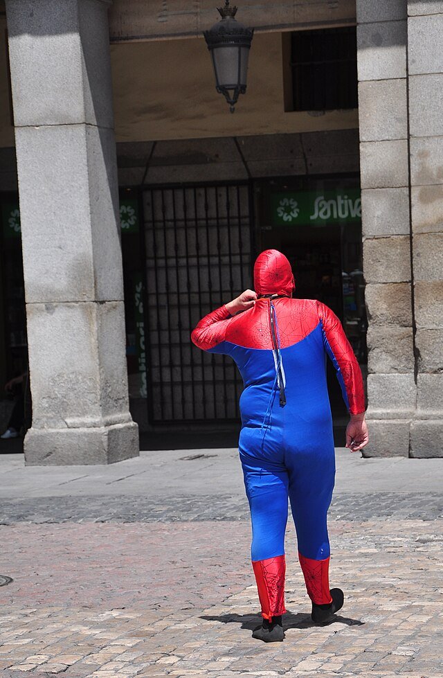 Жирный в костюме человека паука